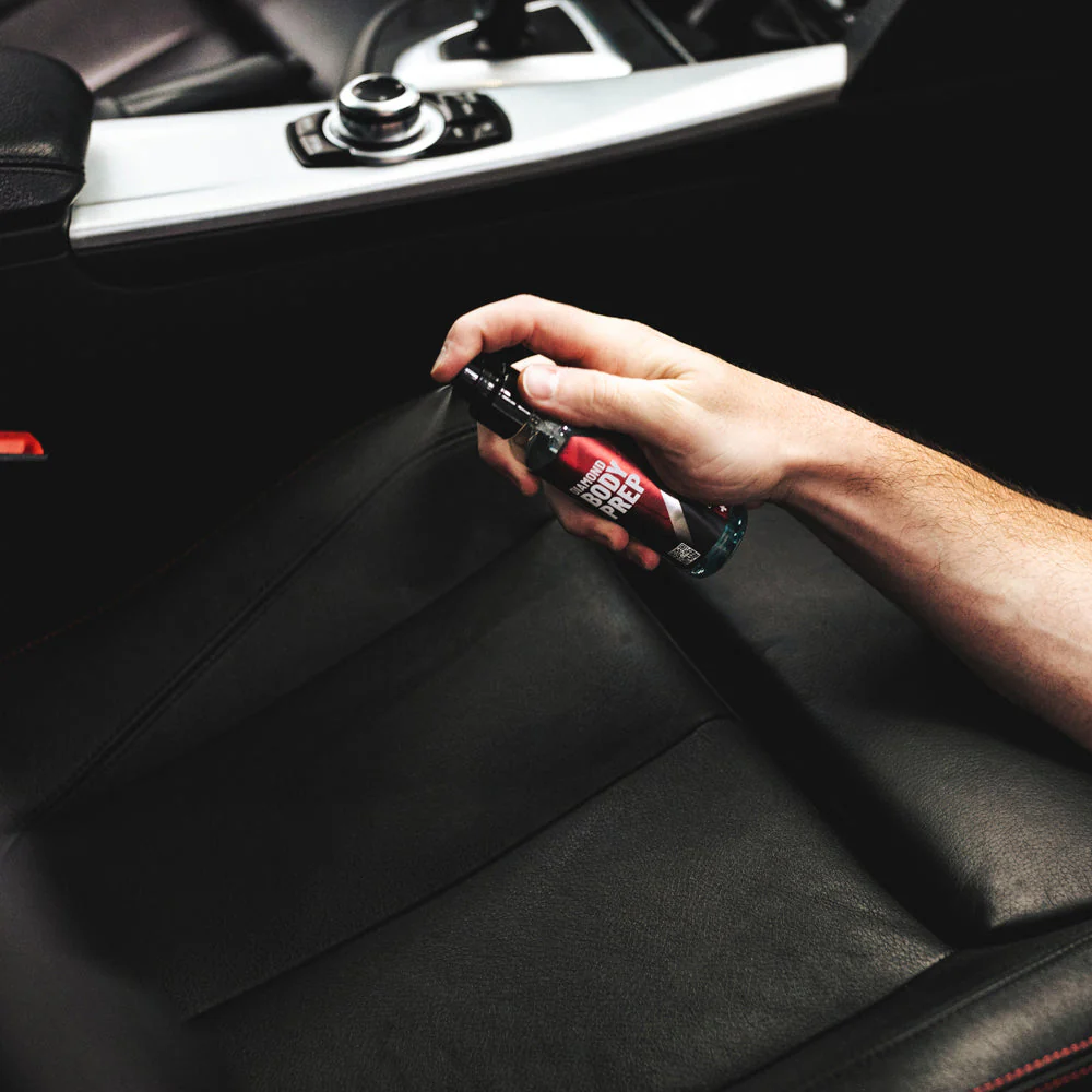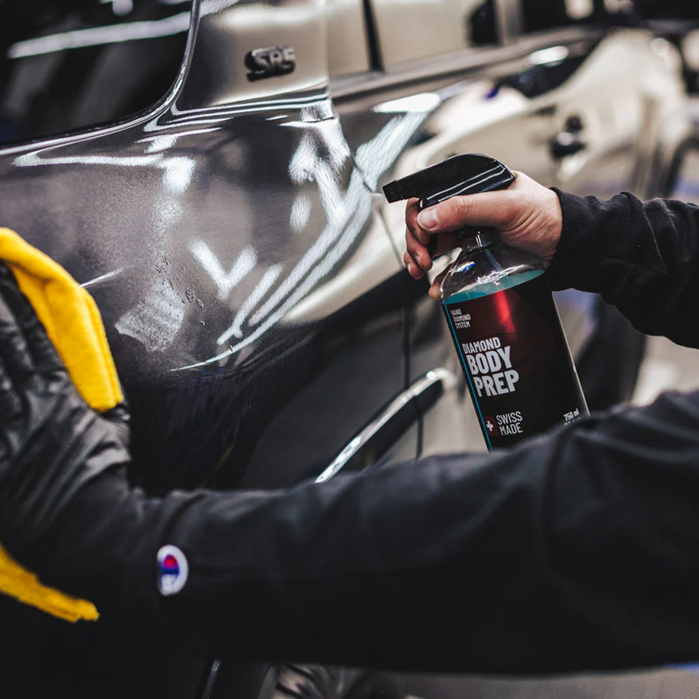 Diamond Body Prep е незаменима част от процеса на нанасяне на нанодиамантеното покритие. За разлика от други подготвящи спрейове, тази следващо поколение формула използва патентована смес, която е коренно различна от стандартното избърсване с IPA (изопропилов алкохол).