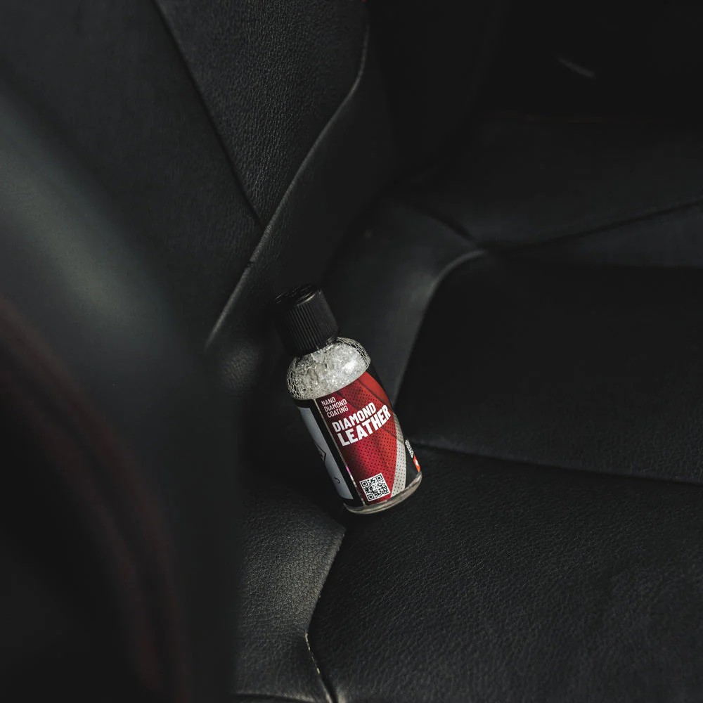 Diamond Leather е изключително здраво, но същевременно гъвкаво и дишащо покритие на основата на нанодиаманти, създадено специално за всички видове кожа. За разлика от керамичните покрития, нанодиамантената молекулярна структура на това покритие позволява на порестата кожа да „диша“, като така запазва естествената си мекота, докато в същото време осигурява безпрецедентна устойчивост на износване и петна. Нанасянето е изключително лесно и не изисква професионално обучение или предишен опит, за да постигнете перфектен резултат.